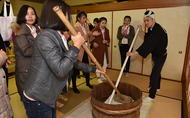 The second activity had a distinct Japanese flavour. The brewing workshop gave participants hands-on experience in Japanese traditional Koji-making (fermentation) process. It concluded with a tasting of one of the most famous products from the Koji-making process — the Japanese rice wine sake. The other activity is a kimono-dressing experience, where participants learned how to put on a kimono before going for a leisurely stroll. Looking very elegant in their brightly patterned kimonos, participants took photos of themselves and colleagues for a kimono photo contest on Instagram.