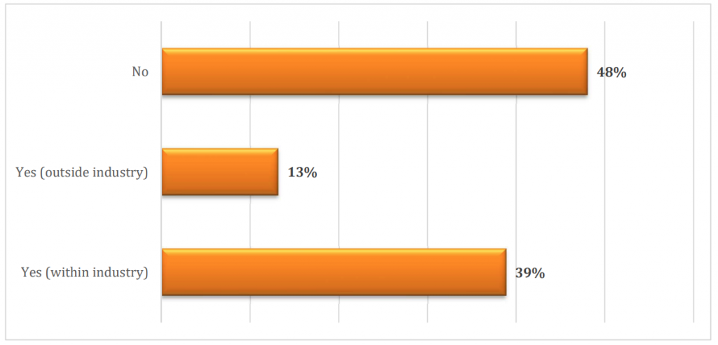As the industry continues to recover from the effects of the pandemic, negative job impacts have reduced – 11 per cent of respondents indicated that they were impacted, down from 18 per cent in 2022; three per cent had their roles made redundant in 2023, compared to nine per cent in 2022.