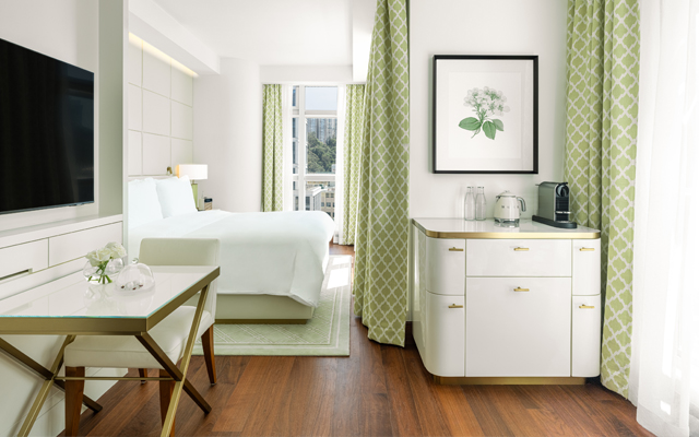 The completed renovations encompass all 188 rooms and suites, now transformed into contemporary spaces imbued with French-inspired design elements. Floor-to-ceiling windows bathe the rooms in natural light and offer views of the surrounding Causeway Bay district. The meeting areas, the 24-hour fitness centre and the laundry room, were also revamped, and an all-day Salon Lanson has been added to complement the facilities.