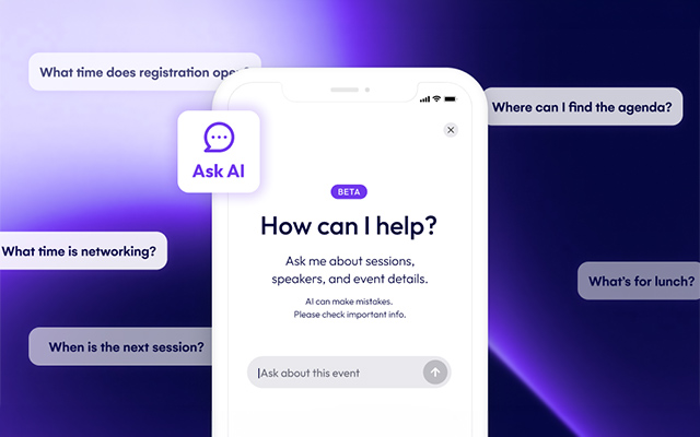 The platform leverages 35 years of historical and live event data to allow planners and attendees to query information using natural language, moving away from traditional report-building and manual troubleshooting.